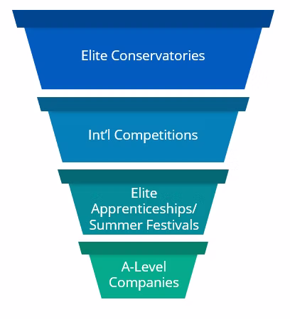 The Pipeline begins with an advanced degree in vocal performance at an elite conservatory, where young singers take on immense levels of student debt (Finkelstein, Varga, 2020). In these early years, singers must win international competitions, pay to apply to audition for low-income apprenticeships and unpaid summer festivals (Finkelstein, 2020), and attract agents connected to top opera houses (Finkelstein, Varga, LaBonte, 2020). Only by making it through the pipeline to work consistently at A-level companies like Houston Grand Opera and the Metropolitan Opera can full-time American singers hope to attain financial solvency.